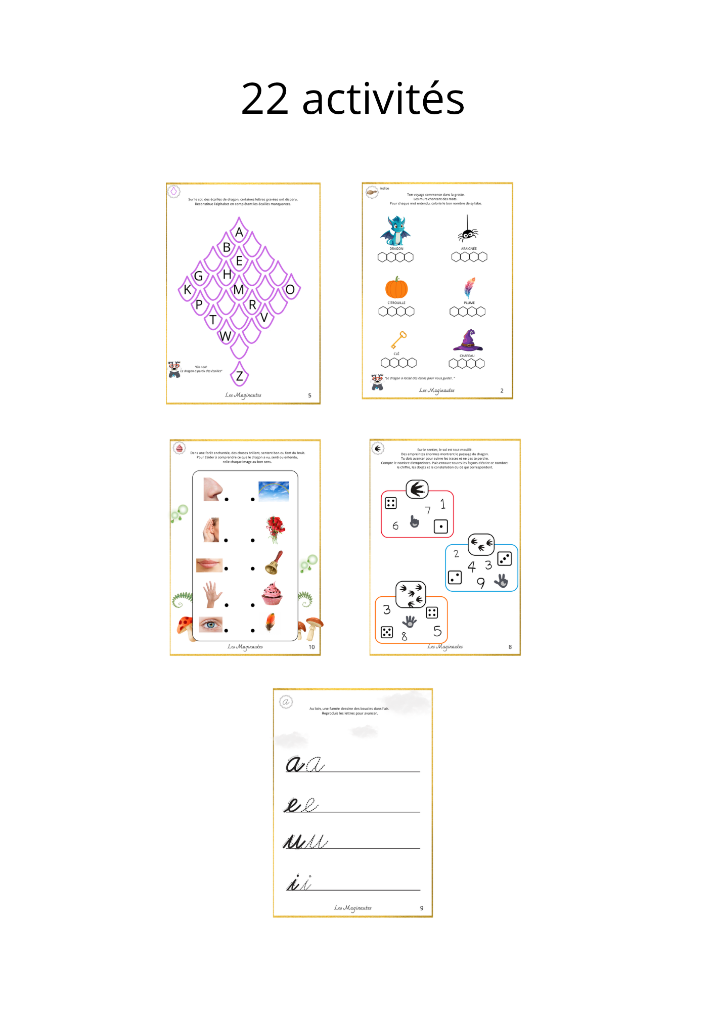 Un livret d'activités ludique et enchanteur.Un livret au format A4 entièrement plastifié. Un fil conducteur narratif tout au long du livret pour une immersion totale. Retrouveras-tu le dragon?